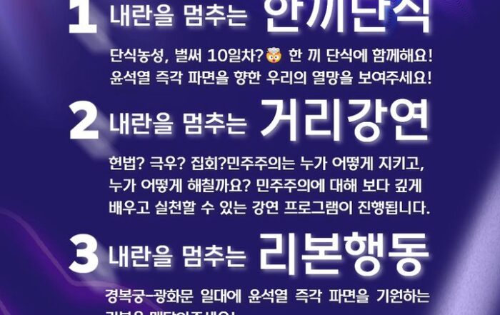 내란은 끝나지 않았다! 12.3 계엄 1년, 국회로 모이자! 12.3 내란외환청산과 종식, 사회대개혁 시민대행진 일시: 2025년 12월 3일(수) 오후 7시 장소:국회의사당역 5번 출구 내란수괴 윤석열의 구속기간이 내년 1월 18일이면 만료됩니다. 이미 한 차례 내란수괴 윤석열의 구속 [...]