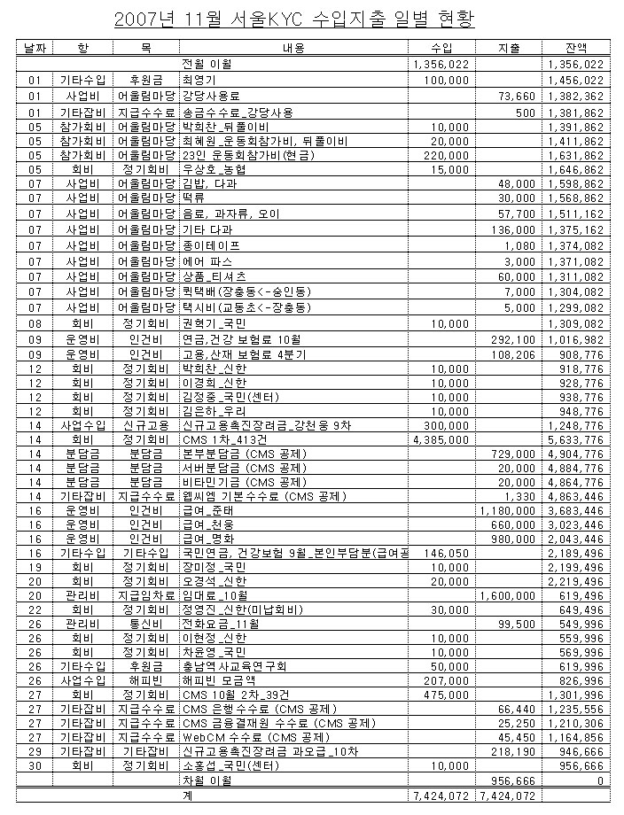 2007년 11월 살림살이 내역입니다 Gallery 2007년 11월 살림살이 내역입니다 옛 게시판/옛 이달의 살림살이 2007년 11월 살림살이 내역입니다 클릭해서 보세요 By admin|2007-12-13T09:24:00+00:0012월 13th, 2007|옛 게시판/옛 이달의 살림살이| Read More