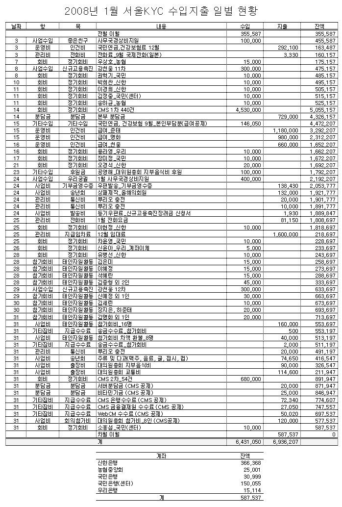 2008년 1월 살림살이 내역입니다 Gallery 2008년 1월 살림살이 내역입니다 옛 게시판/옛 이달의 살림살이 2008년 1월 살림살이 내역입니다 클릭해서 보세요! By admin|2008-02-21T06:26:11+00:002월 21st, 2008|옛 게시판/옛 이달의 살림살이| Read More