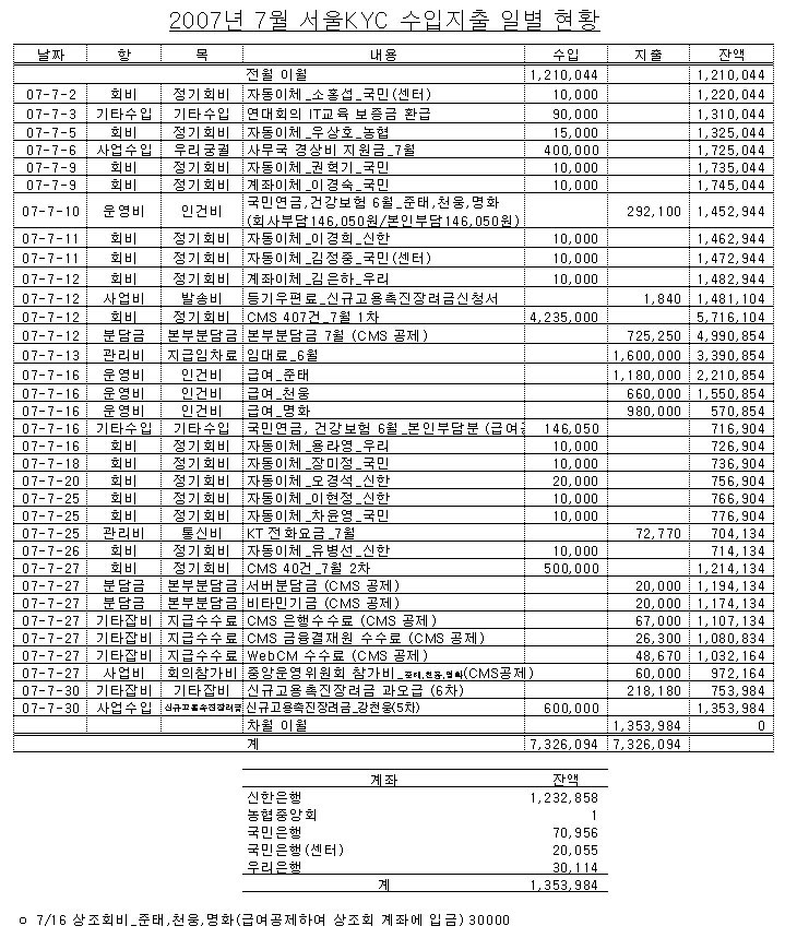 2007년 7월 살림살이 내역입니다 Gallery 2007년 7월 살림살이 내역입니다 옛 게시판/옛 이달의 살림살이 2007년 7월 살림살이 내역입니다 클릭해서 보세요 By admin|2007-08-08T06:15:12+00:008월 8th, 2007|옛 게시판/옛 이달의 살림살이| Read More