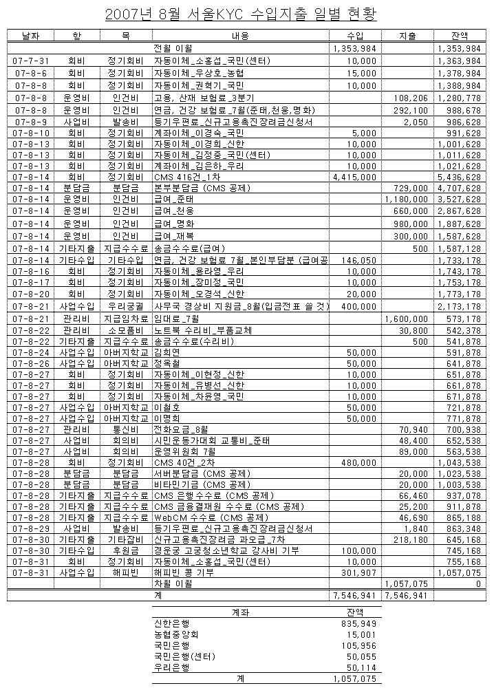 2007년 8월 살림살이 내역입니다 Gallery 2007년 8월 살림살이 내역입니다 옛 게시판/옛 이달의 살림살이 2007년 8월 살림살이 내역입니다 클릭해서 보세요. By admin|2007-09-18T07:43:51+00:009월 18th, 2007|옛 게시판/옛 이달의 살림살이| Read More
