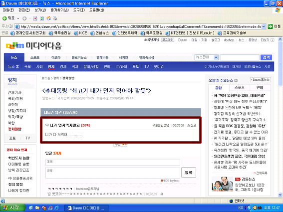 다음에 이라는 제목으로 5월 8일자 연합뉴스 기사가 있는데요, 여기에 달린 [...]
