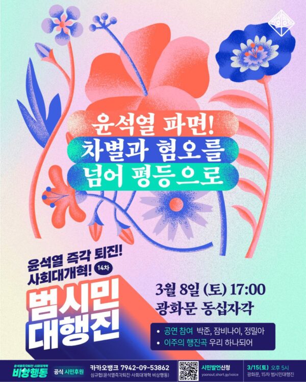 윤석열 파면해야 봄이 옵니다. 이번주 봄맞이는 광화문에서 같이 하실까요?