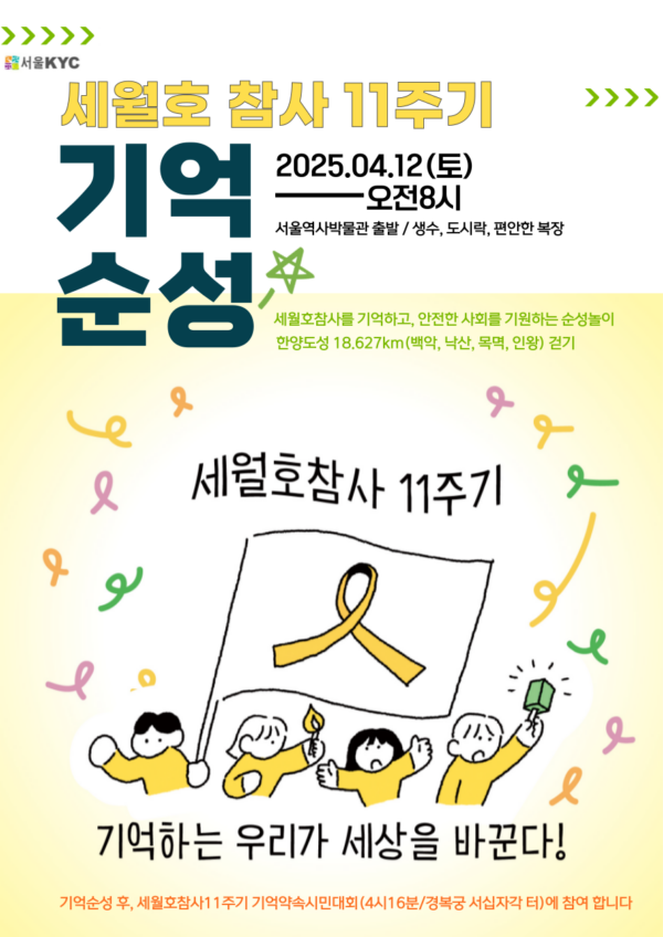 *기억순성 종료 후, 세월호참사11주기 기억약속시민대회(4시16분/경복궁 서십자각 터)에 참여합니다.