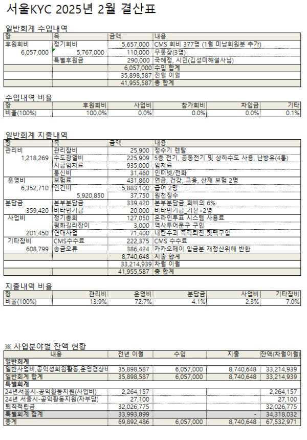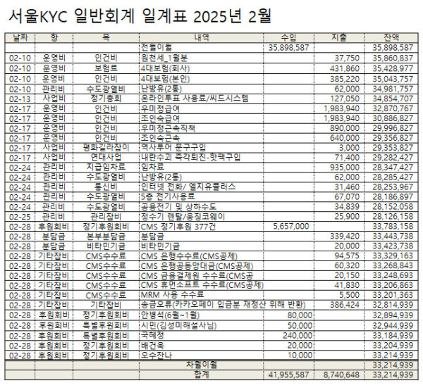 2025년 2월 서울KYC를 후원해주신 회원 명단입니다.
