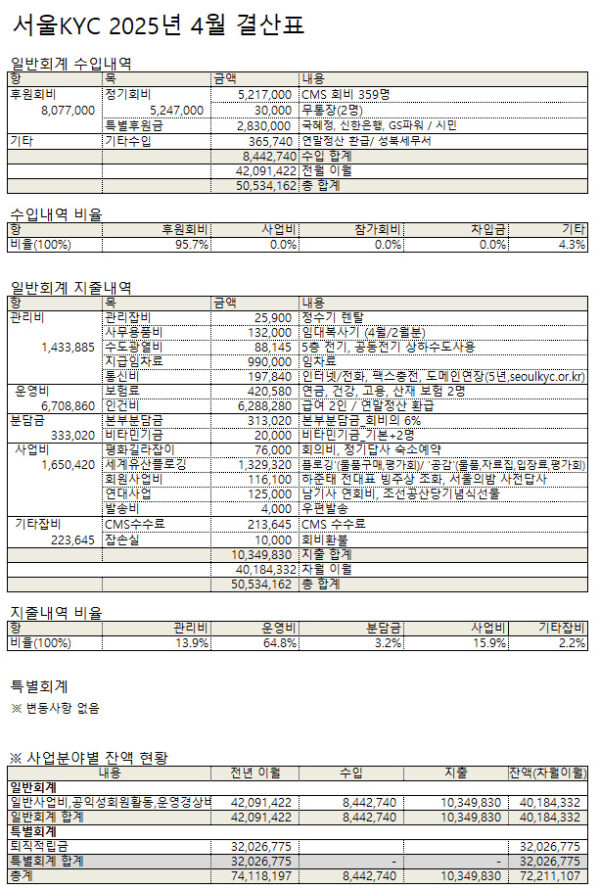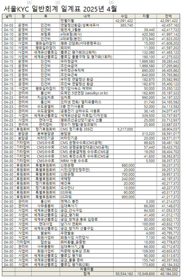 2025년 4월 서울KYC를 후원해주신 회원 명단입니다.
