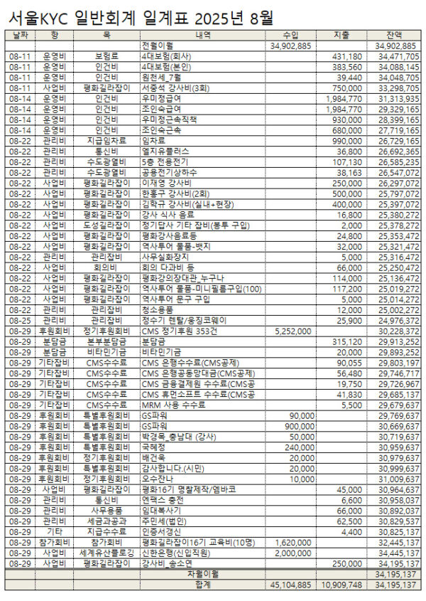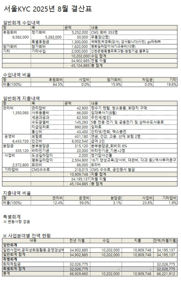 2025년 8월 서울KYC를 후원해주신 회원 명단입니다.