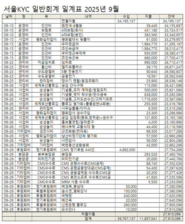 2025년 9월 서울KYC를 후원해주신 회원 명단입니다.