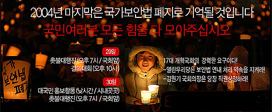 30일 (목) 저녁 국회앞으로 모여주세요 2004년 마지막은 국가보안법 폐지로 기억될것입니다. [...]