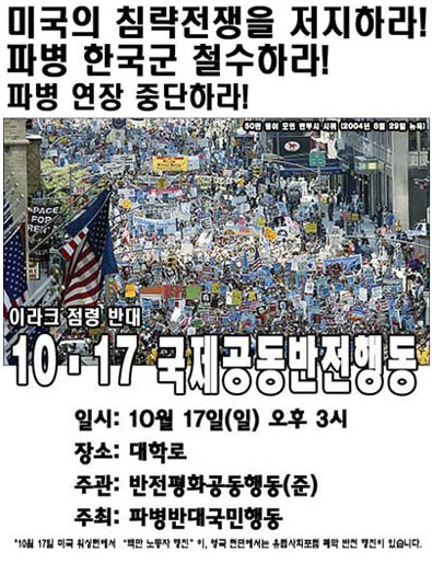 이라크 점령 반대 10.17 국제공동반전행동을 함께합시다 일시: 10월 17일(일) 오후 [...]